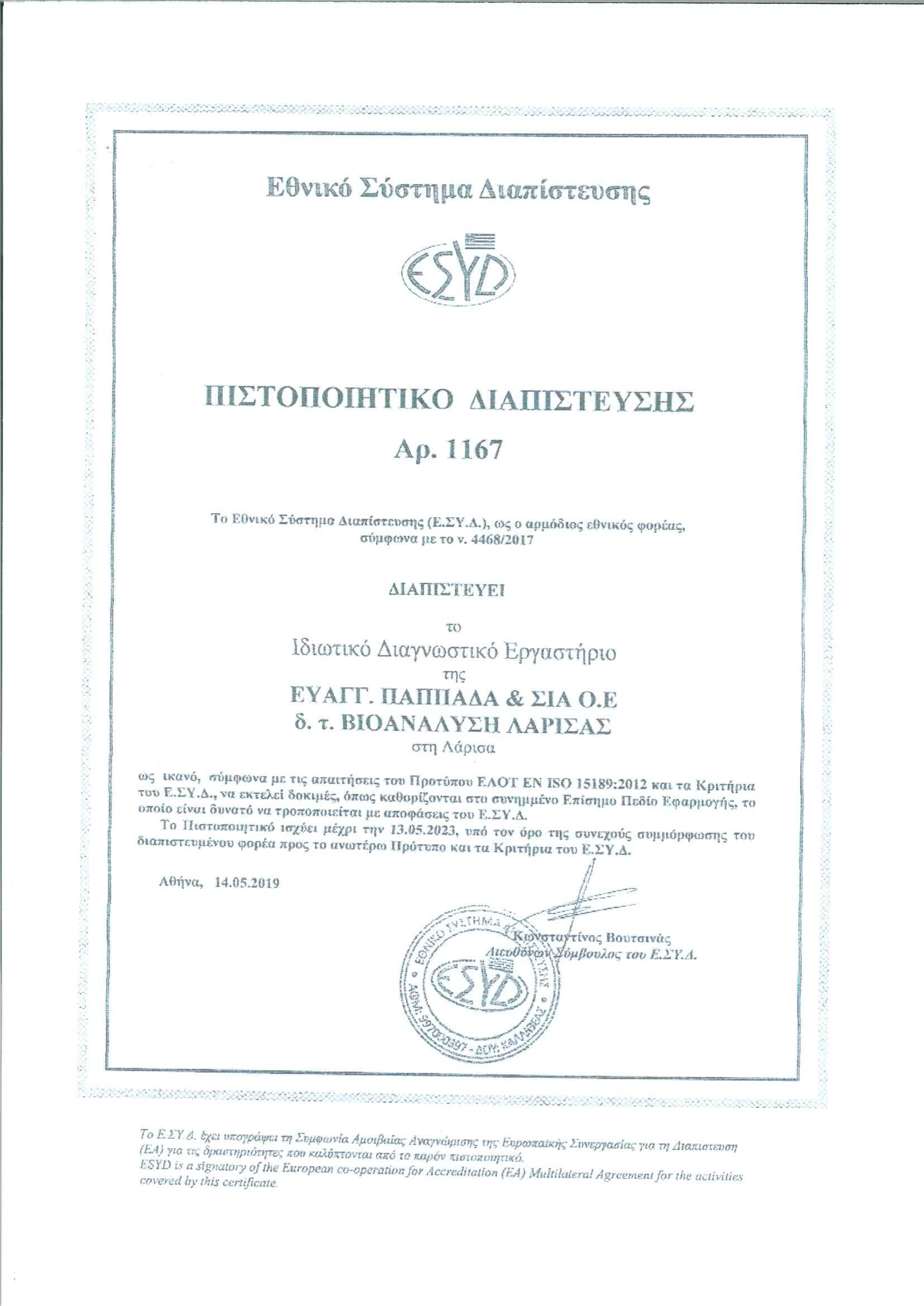 "Η ΒΙΟΑΝΑΛΥΣΗ ΛΑΡΙΣΑΣ έχει πιστοποιηθεί κατά ISO