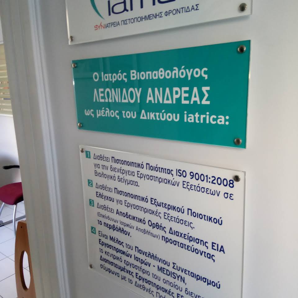 Το Διαγνωστικό Ιατρείο μου έχει πιστοποιηθεί κατά ISO 9001, επιβεβαιώνοντας το υψηλό επίπεδο παροχής υπηρεσιών. Εξωτερικοί Ποιοτικοί Έλεγχοι από Παγκόσμιας αναγνώρισης φορείς επισφραγίζουν την εγκυρότητα των αναλύσεων. Και όλα αυτά, πάντα με γνώμονα την προσωπική επαφή με τον κάθε εξεταζόμενο ξεχωριστά. Ως μέλη του iatrica δρούμε υπεύθυνα απέναντι στον άνθρωπο και στο περιβάλλον.